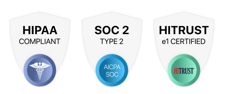HIPAA-compliant, SOC 2 Type 2, and HITRUST e1 certified.