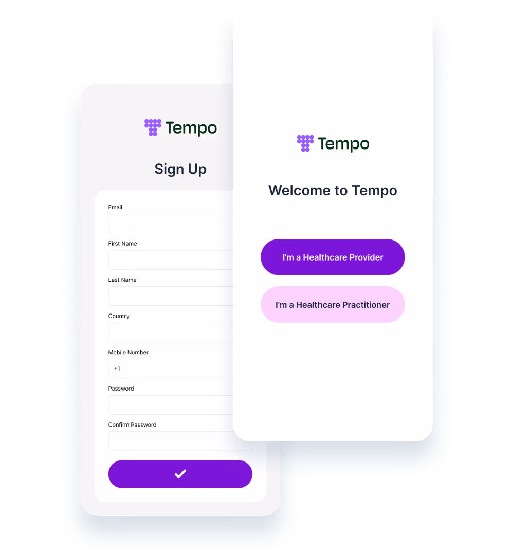 Sign up for Tempo on mobile or on the web. Tempo gives different users a customized experience and user portal to manage their account.