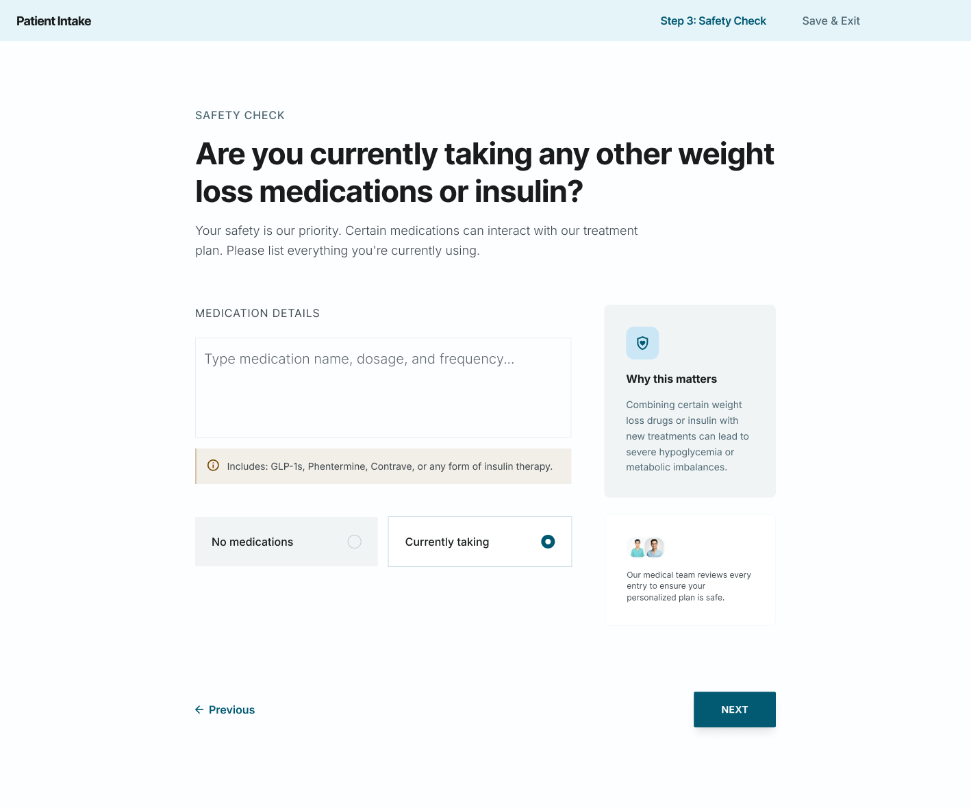 Build digital intake flows for online prescribing that screen patients, collect health history, and qualify them for treatment.
